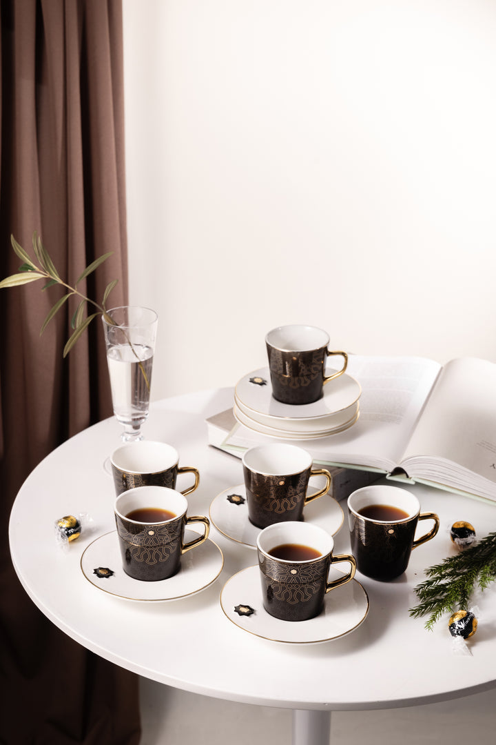 6 Matching Saucers: Perfectly sized to complement the cups, these saucers help organize the table neatly and attractively. Their elegant design matches the cups, ensuring a cohesive and stylish presentation.