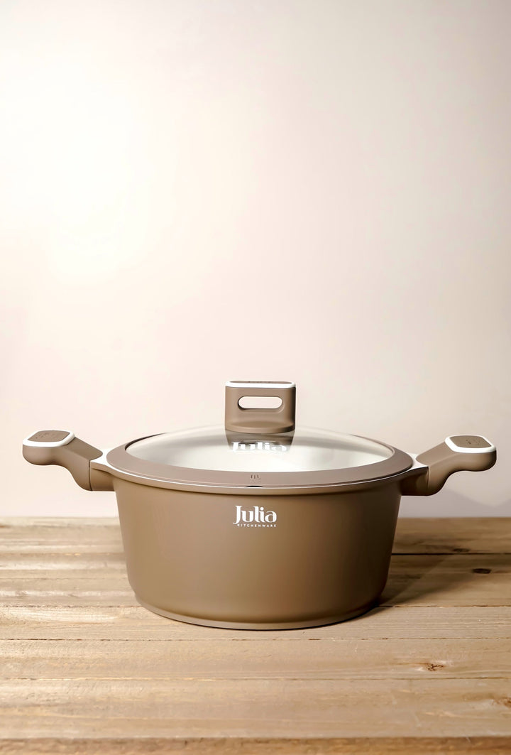 ميزات طناجر جوليا: 1. تصميم عصري وجذاب تتوفر بألوان متعددة مثل الأسود، الرمادي، البيج، والأخضر، مما يتيح تنسيقها بسهولة مع ديكور المطبخ. 2. مادة التصنيع مصنوعة من مواد عالية الجودة مثل...